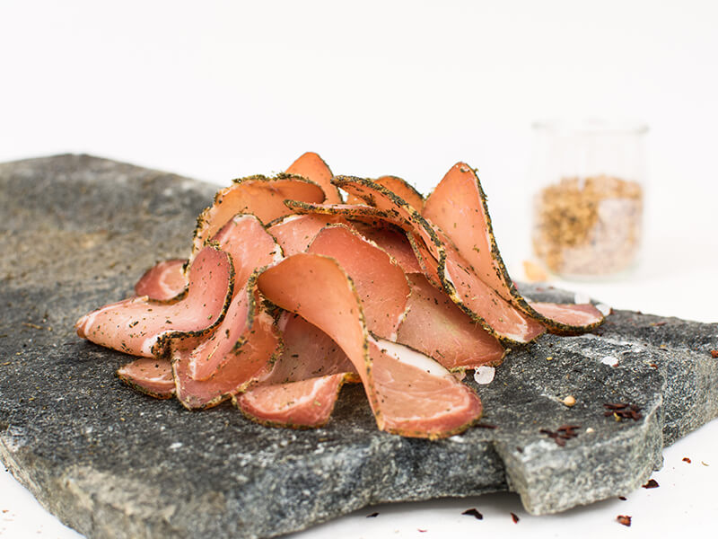 Неврокопско филе Деликатесен, 230 g – сушено, крехко свинско контрафиле, нежно покрито с ароматен кайзер от чубрица.