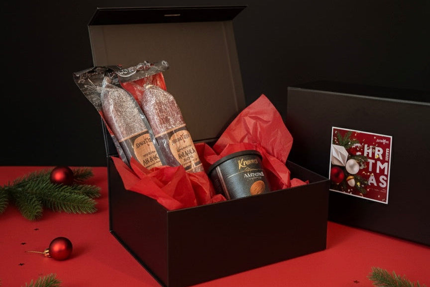1. Телешка Луканка, 210g: Сурово-сушен деликатес от телешко месо и ароматни подправки. Перфектно мезе за компания на любимо питие.