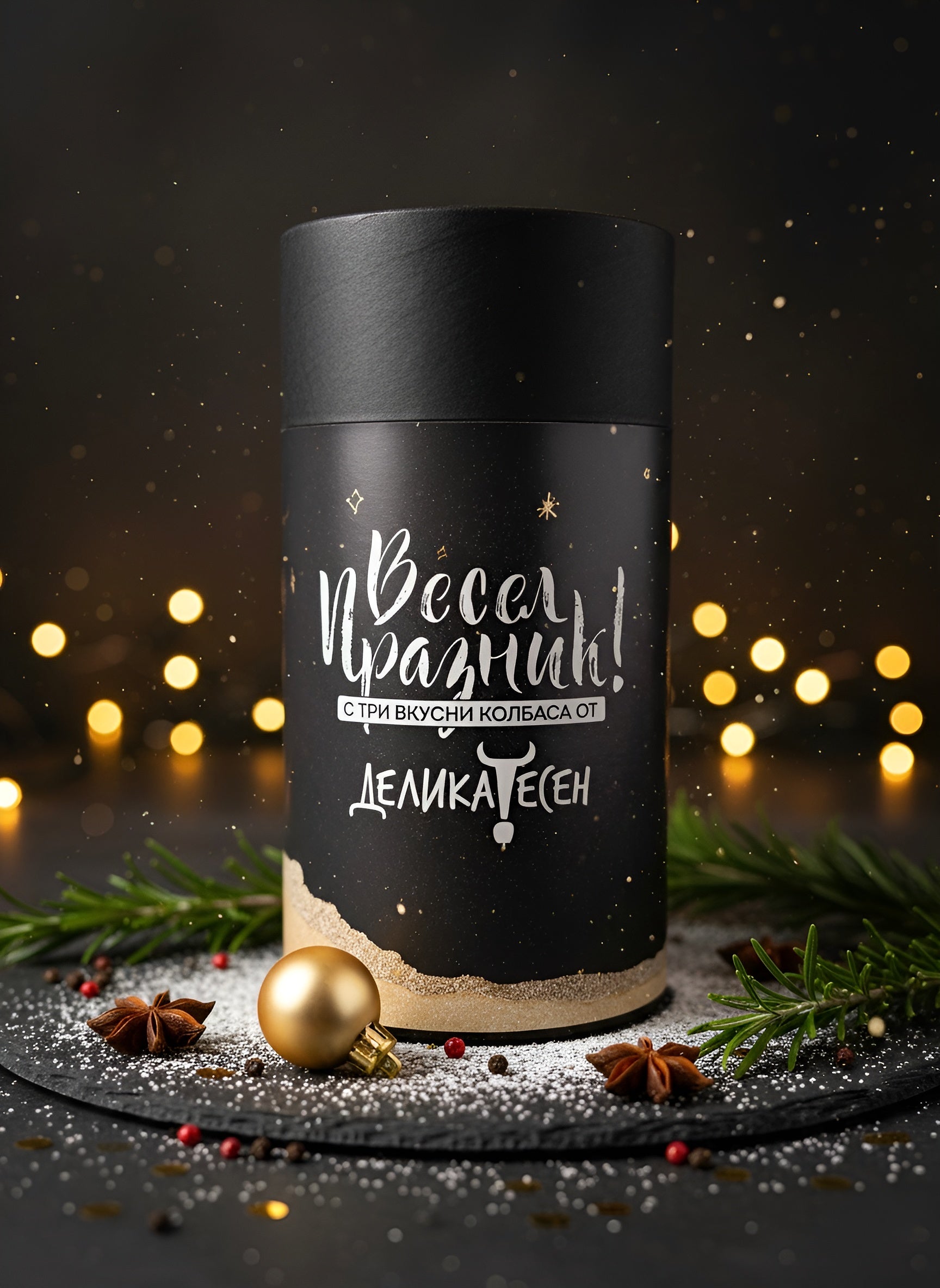 Подарък Happy Holiday- весел празник за споделяне! Стилен и универсален подарък за корпоративни клиенти, бизнес партньори или служители, както и за всички ценители на вкусната храна и споделените празници! Специално подбрана селекция от 3-те най- обичани колбаса Деликатесен, които да съчетаеш с любимо питие, за още повече наслада.