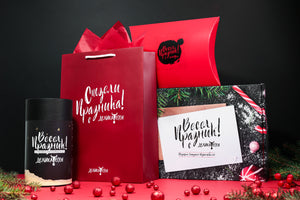 Обвивка: Луксозна подаръчна торбичка с празнична опаковъчна хартия, готова за подаряване